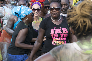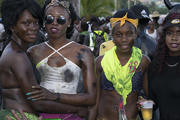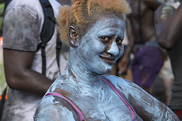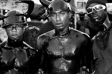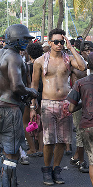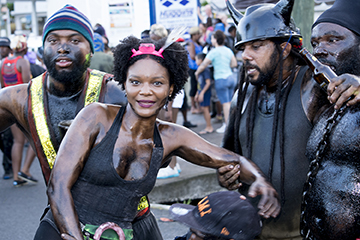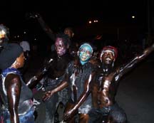 Hill summarizes that there was, “a gang of almost naked primitives bedaubed with black varnish, pulling at a chain attached by padlock to one of their members who was occasionally knocked down”. Behavior of the chained character is not described, but the costuming does suggest a connection to the Jab Molassie and satirization of slavery. Like much of Carnival, there is no simple, neat lineage in the creation of the Jab Molassie, but a nebulous intersection of many cultural facets, intersecting in an environment bacchanal. SourceTraditionalMas.com