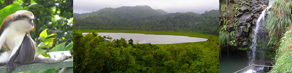 Encounter, within the Grand Etang Forest Reserve, the world famous Mona Monkey.