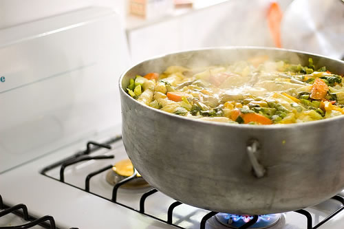 1. Wash salted meat, cut into small pieces. Put into heavy aluminium pot.
